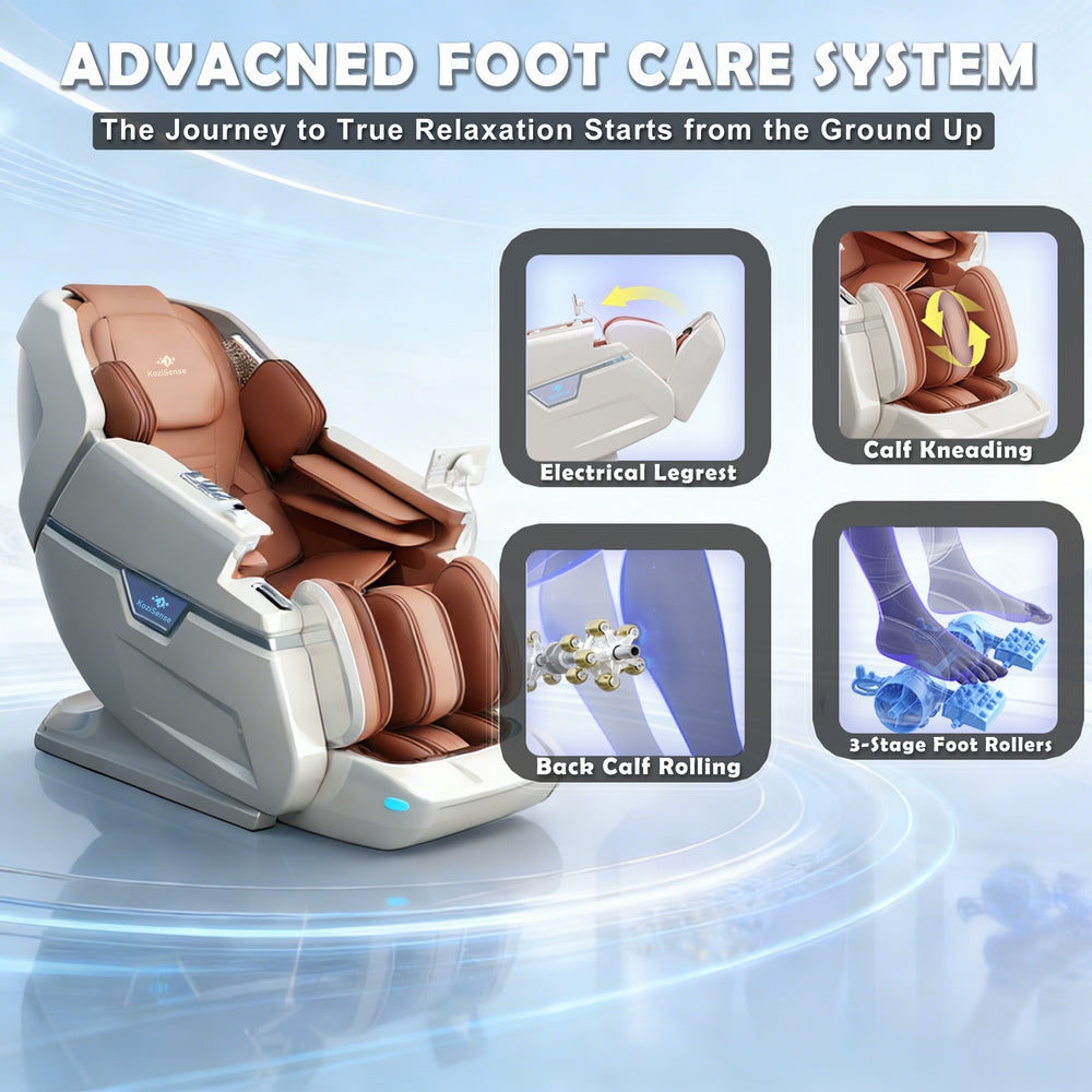The journey to true relaxation starts from the ground up. Our integrated foot care system combines 3-stage professional foot rollers with specialized calf kneading and rolling technology. By targeting key pressure points and improving circulation in the lower extremities, it effectively flushes away fatigue and restores vitality to tired legs after a long day of standing or walking.