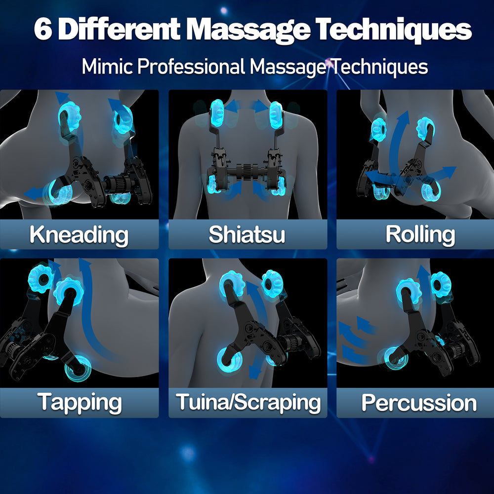 Its 4D upper mechanism delivers deep, precise massage to shoulders, neck, and lower back, while the 3D lower mechanism targets glutes and hips for continuous relief. Together, they create a 1+1>2 dual-action experience, amplifying comfort and leaving your body completely revitalized.