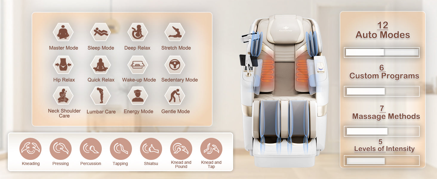 Whether you need a quick stress-relief session after work or a deep, targeted recovery after an intense workout, the 12 preset auto programs have you covered for virtually every mood and need. Prefer to take control? Switch to any of the 7 manual massage techniques and dial in exactly the style, speed, and intensity you want. And once you've found your perfect combination, save it β the 6-slot custom memory function lets you record your exact settings and replay them anytime with a single touch, so your ideal massage is always just one button away. No more readjusting every time you sit down.