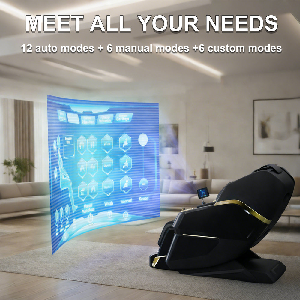 Meet all your wellness needs with an extensive library of 24 distinct modes. Choose from 12 professional auto modes, 6 manual techniques, and 6 custom settings to create your ideal session. Whether you need a morning wake-up or a deep post-workout recovery, the perfect massage is always just one touch away.