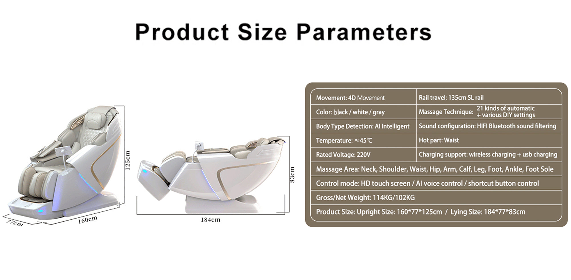 2. 4D Rollers, the front and rear can be retracted by 12cm;