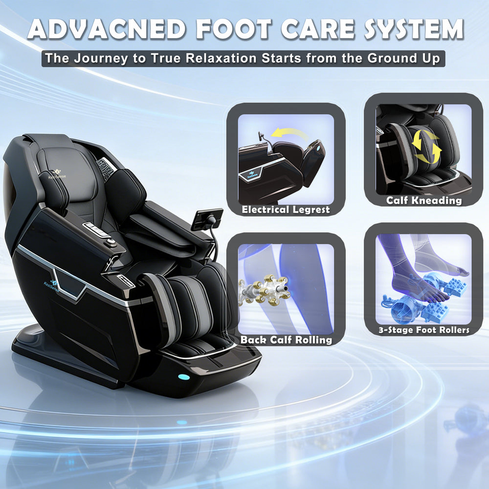 The journey to true relaxation starts from the ground up. Our integrated foot care system combines 3-stage professional foot rollers with specialized calf kneading and rolling technology. By targeting key pressure points and improving circulation in the lower extremities, it effectively flushes away fatigue and restores vitality to tired legs after a long day of standing or walking.