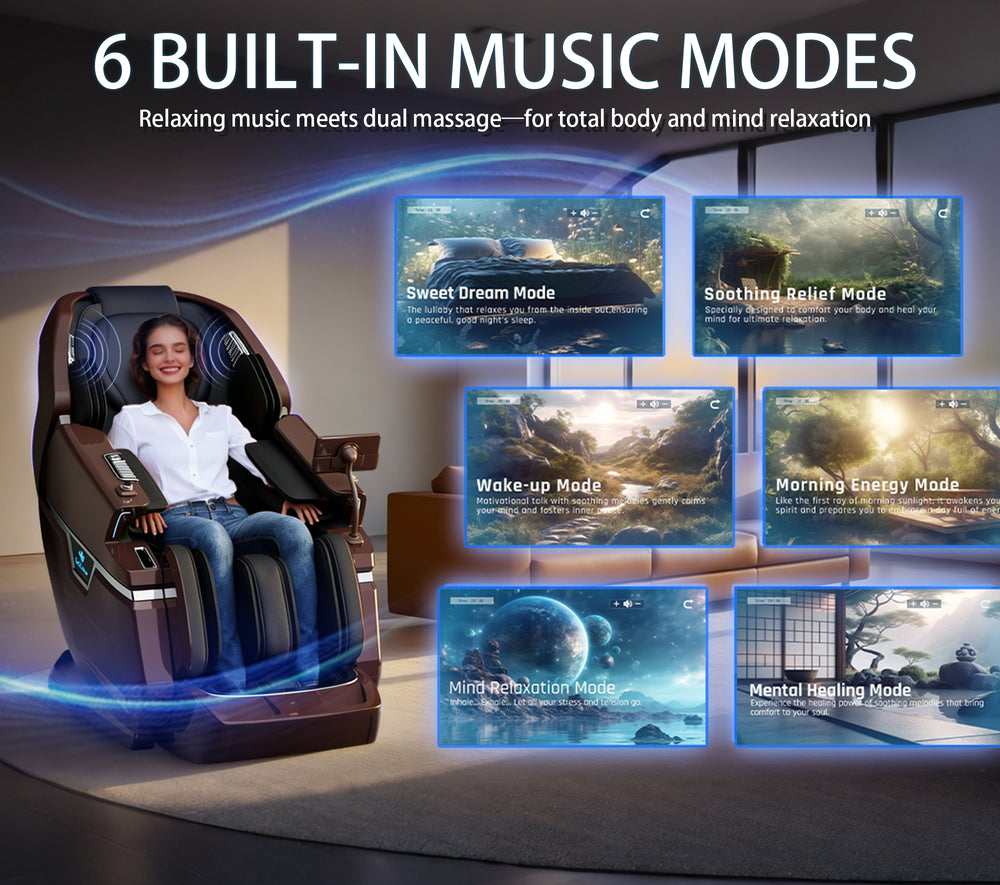 This massage chair features an advanced 4D + 3D dual roller system with a 140cm SL track for deep, full-body coverage. The auto-extension leg massager, calf kneading, and three-stage foot rollers deliver targeted lower-body relief. With 24 auto programs, custom modes, smart voice control, a full-touch LED screen, full-body airbags, graphene back heating, and Hi-Fi speakers, it offers a seamless, ultra-premium massage experience from head to toe.